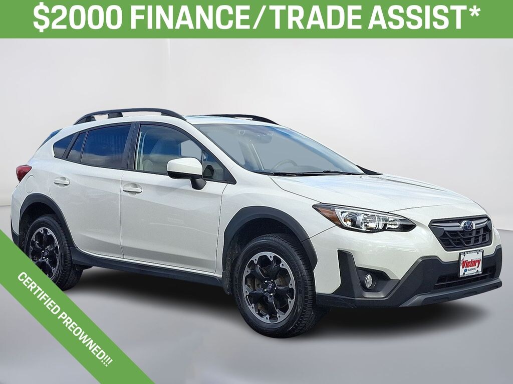 *** 1 OWNER - CLEAN CARFAX - PREMIUM TRIM - BLIND SPOT MONITORS - APPLE CARPLAY / ANDROID AUTO - KEYLESS ACCESS - LANE DEPARTURE WARNING - POWER SUNROOF *** Crosstrek Premium, 4D Sport Utility, 2.0L 4-Cylinder DOHC 16V, Lineartronic CVT, AWD, Crystal White Pearl, Gray W/Orange Stitching Cloth, 6-Way Power Driver's Seat, AM/FM radio: SiriusXM, Auto-Dimming Exterior Mirror w/Approach Light, Auto-Dimming Mirror w/Compass & HomeLink, Blind Spot Detection w/Rear Cross-Traffic Alert, Brake assist, Exterior Parking Camera Rear, EyeSight System, Front Bucket Seats, Front fog lights, Fully automatic headlights, Heated door mirrors, Heated Front Bucket Seats, Keyless Access w/Push-Button Start, Moonroof & BSD w/RCTA & Power Driver Seat, Power Moonroof, Radio: Subaru STARLINK 6.5" Multimedia Plus System, Remote keyless entry, Split folding rear seat, Spoiler, STARLINK/Apple CarPlay/Android Auto, Steering wheel mounted audio controls, Wheels: 17" x 7.0J Alum Alloy Blk w/Machine Finish.